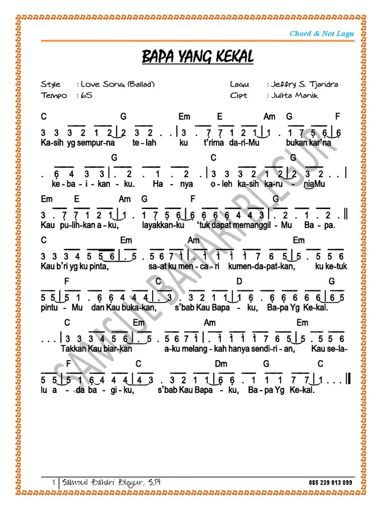 Bapa Yang Mengasihiku Kau Bapaku Yang Baik Melanie Aurora Geoffrey Chords Chordify. Telah ku trima dari Mu. Partitur NOT ANGKA Karaoke LAGU J - u n - e - - - - - - - - - - 1 1 - - - - 2 - - - - 0 - 1 4 - - - - - - - Chord Dan Not Angka Lagu Bapa Yang Kekal Jeffry S.