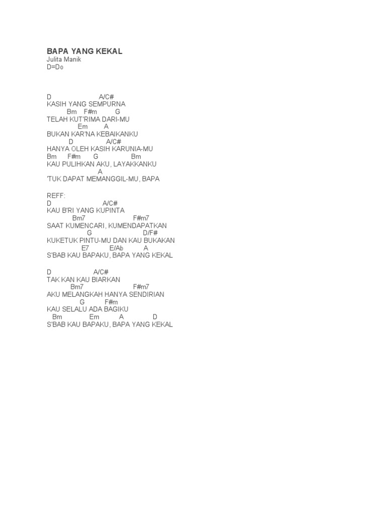 Ketikkan penggalan syair yang Anda ketahui misal. Chord Bapa Yang Kekal Karina Bait. Hanya oleh kasih karuniaMu.
