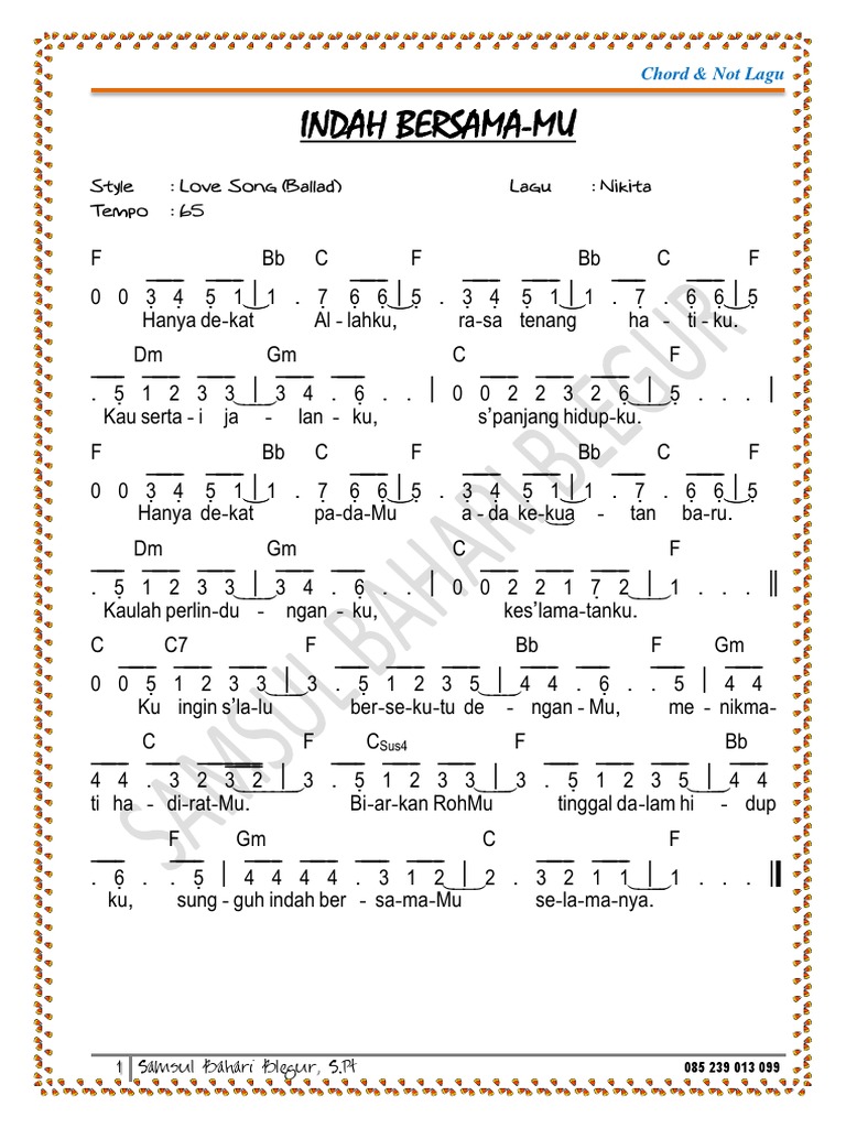 Intro D Fm Em A7 DF Gsus2 Em A7 Verse D Fm Bukan dengan kekuatan ku G Em Asus4 A Ku dapat jalani hidupku D Fm Tanpa Tuhan yang disampingku G Em Asus4 A Ku tak mampu sendiri Pre-chorus Em A Engkaulah kuat ku Em A Yang menopang ku Chorus D AC Bm Ku. Notasi angka 4 suara SATB 1. July 9 2015 By Admin.